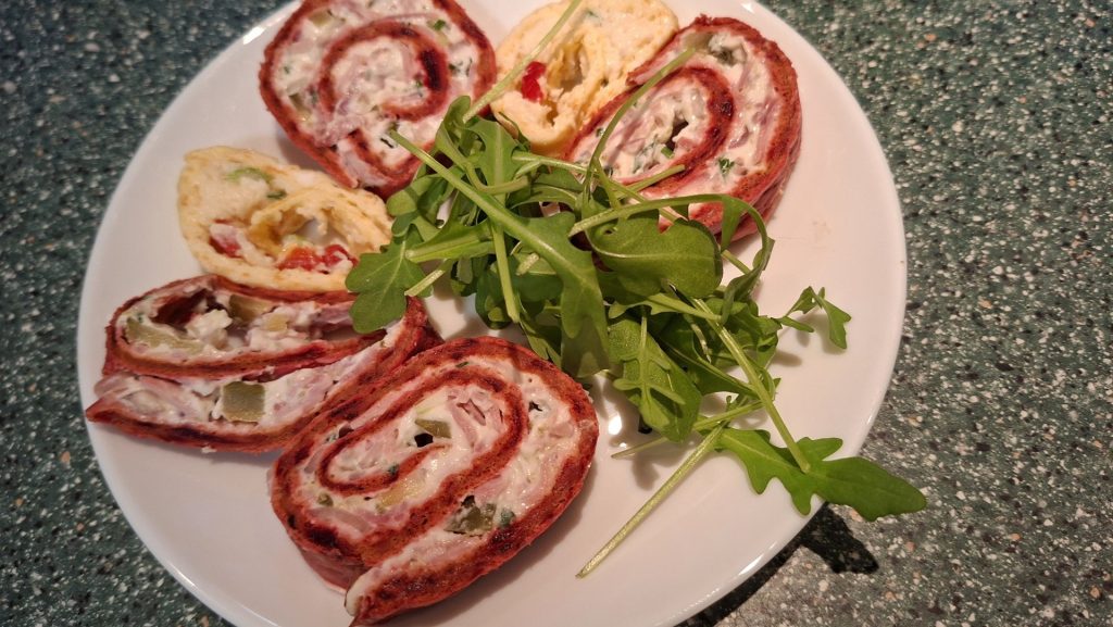 Ač je Silvestr už dávno za námi, přesto jsem v receptáři pro Kuchařinku zanechala zrak u jídla, které je snadné, barevné, chutné a jednoduché. Hodí se jak na rychlou večeři, příležitostnou sváču na výlet, tak i na pohoštění pro přátele. Sice na to padne plato vajec, ale kdo by to počítal. Naše lekce vaření tedy měla jasný záměr. Zarolovat jednu vaječnou placku s mrkví a druhou v barvě červené řepy. Náplně už byly tak trochu co kdo má rád nebo co dům dal. Tento recept na mě totiž jednou vykoukl z FB a já jsem je oba s nadšením hned šla realizovat. Od té doby jsem netrpělivě čekala na den, kdy si ho vyzkouší i děti z Kuchařinky.